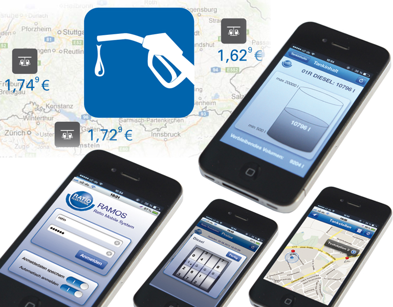 Mit der App RAMOS von Ratio Elektronik kann man von überall und jederzeit die Tankinhalte kontrollieren und die Kraftstoffpreise ändern.