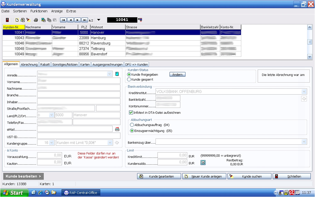 Kunden-/Kartenverwaltung